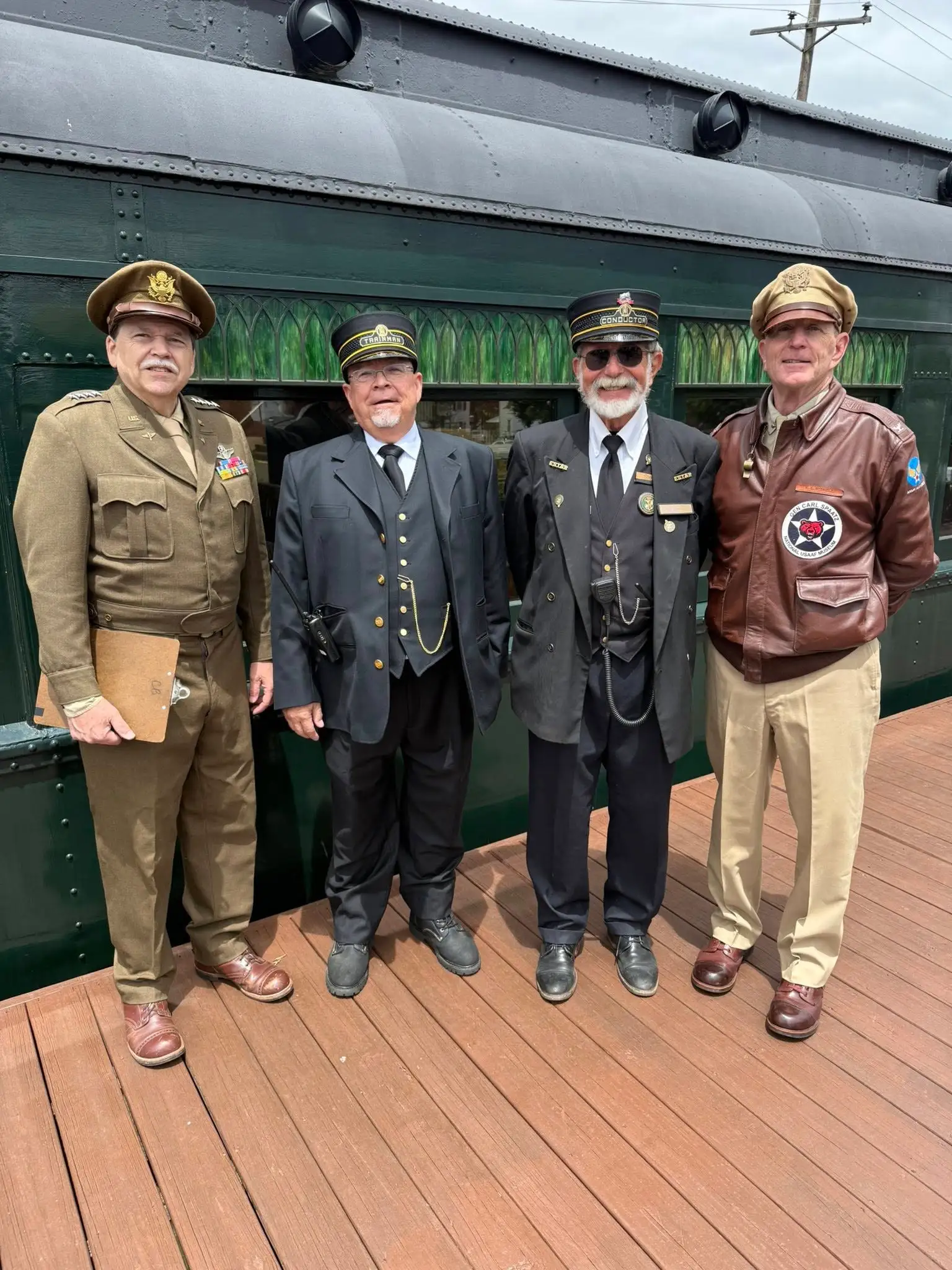 Onboard, before the train departs and during the journey, there will be a reenactment of how the military traveled by train. Special vehicles will also be on exhibit at the Auto Museum and in the railroad parking lot.